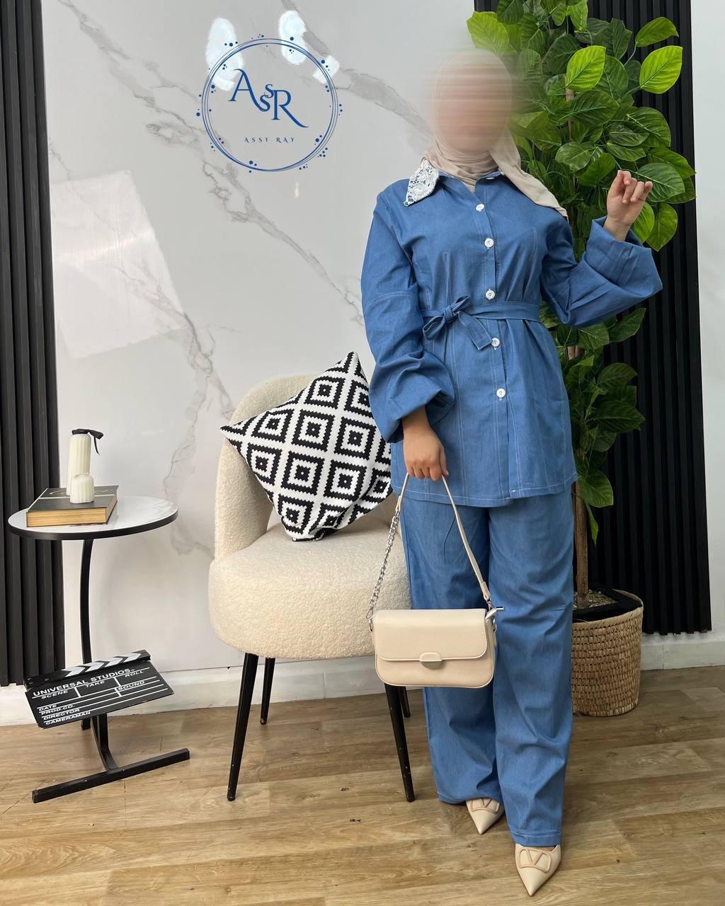 Ce modèle présente un ensemble moderne à la fois confortable et élégant, parfait pour un style décontracté tout en restant chic.